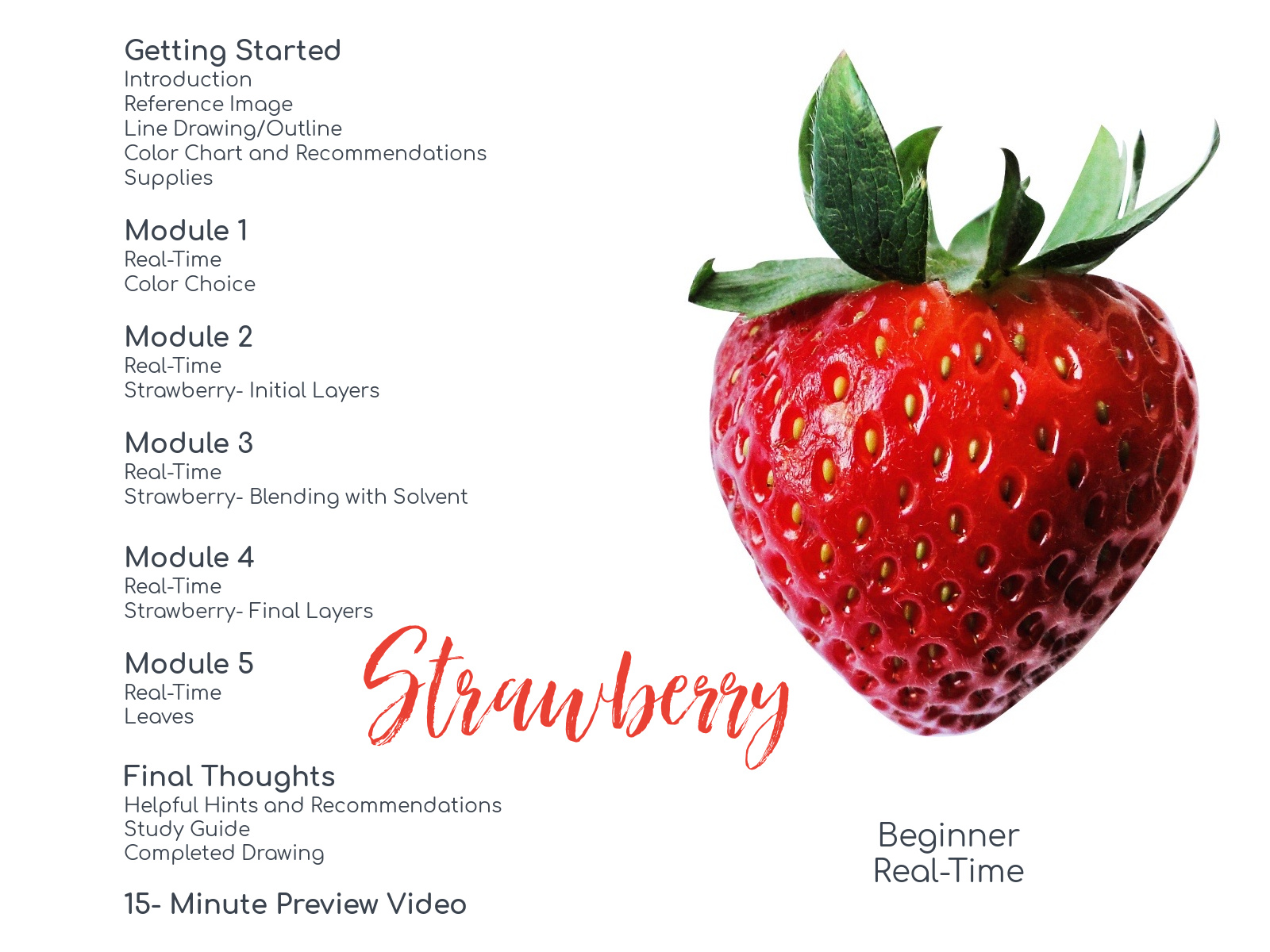 This tutorial series includes a reference image, line drawing/outline, a supplies list, a pencil list, and 5 video-based lessons.